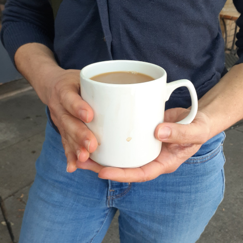 Met up with multidisciplinary artist Xander Marro at Seven Stars on Broadway at 8am. The weather was a little grey but not rainy, great coffee weather. We each got coffee in a mug and a cup of water in a plastic cup. Coffee was good. We talked about Xander's recent experiences at a residency in Germany, her current work on renovating "the Wedding Cake House" here in Providence, and naturally about the role of art in society. Xander and I have been friends for a long time so naturally we also gossipped and griped as much as can be expected, and she gave me good advice. Kate Schapira stopped by to pick up some pastries for a friend, and chatted with us for a sec. Also Jim from Black Cat came through for his morning cup, but we just said hi. We didn't see anyone else we knew except Xander saw someone she thought she might know but couldn't really remember. We both got free refills.